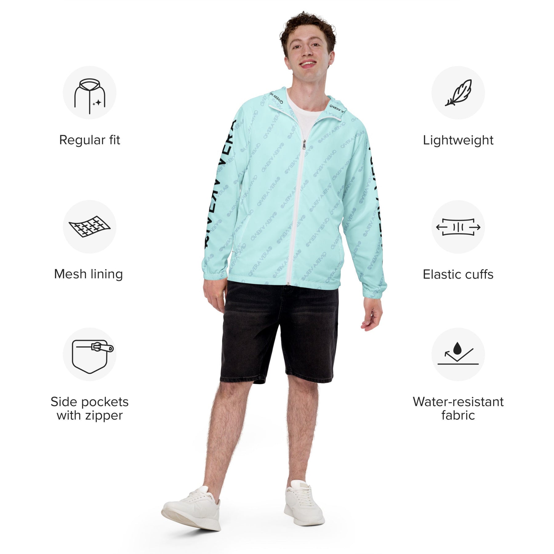 Avec sa coupe régulière, ses poignets élastiqués, sa capuche et ses poches latérales, ce coupe-vent offre un confort optimal et une grande praticité au quotidien.